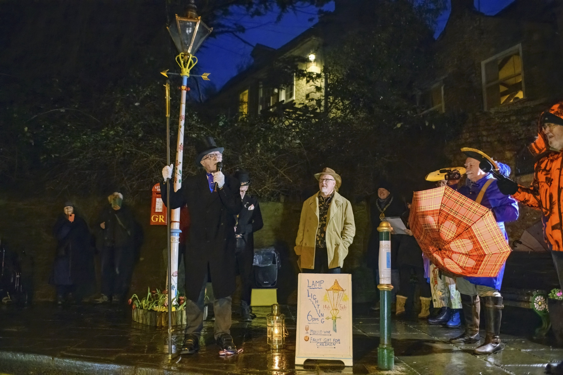 The 2025 ceremony, signalled by the traditional firework at 5.30pm, started with the gathering crowd being serenaded by an accordian player, Tom Woolman. At 6pm sharp the town crier, Martin Scott, exulted the crowd with words about love. Three poems were read. Reg Ling, the inventor, creator and custodian of the lamp for the last 32 years, handed over his lamp lighting duties to the new incumbent Eddie Young, who lit the lamp. The mayor, Andy Jones, presented Reg Ling with a civic award to commemorate his commitment and dedication. Mulled wine was imbibed. It was cold and rained but the record crowd left happy and full of love.