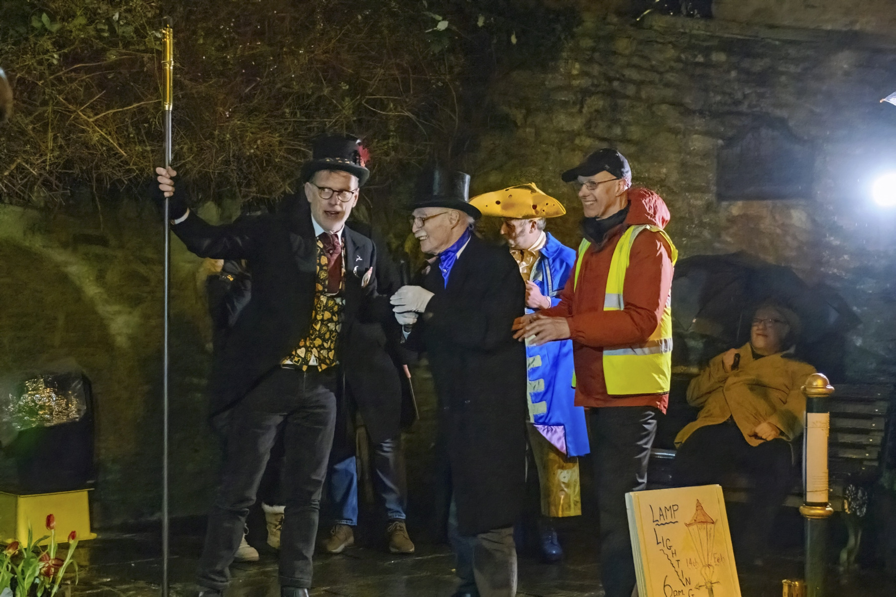 The 2025 ceremony, signalled by the traditional firework at 5.30pm, started with the gathering crowd being serenaded by an accordian player, Tom Woolman. At 6pm sharp the town crier, Martin Scott, exulted the crowd with words about love. Three poems were read by Dom McDonald, Jane Hughes and Ethan King. Reg Ling, the inventor, creator and custodian of the lamp for the last 32 years, handed over his lamp lighting duties to the new incumbent Eddie Young, who lit the lamp. The mayor, Andy Jones, presented Reg Ling with a civic award to commemorate his commitment and dedication. Mulled wine was imbibed. It was cold and rained but the record crowd left happy and full of love.