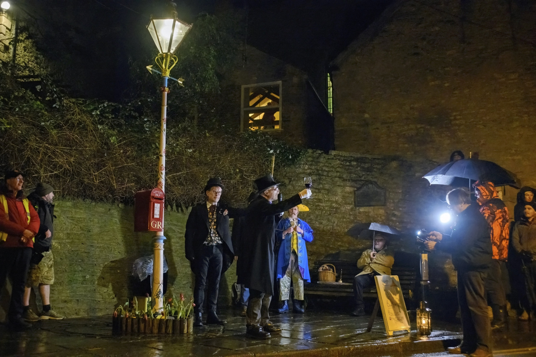 The 2025 ceremony, signalled by the traditional firework at 5.30pm, started with the gathering crowd being serenaded by an accordian player, Tom Woolman. At 6pm sharp the town crier, Martin Scott, exulted the crowd with words about love. Three poems were read. Reg Ling, the inventor, creator and custodian of the lamp for the last 32 years, handed over his lamp lighting duties to the new incumbent Eddie Young, who lit the lamp. The mayor, Andy Jones, presented Reg Ling with a civic award to commemorate his commitment and dedication. Mulled wine was imbibed. It was cold and rained but the record crowd left happy and full of love.